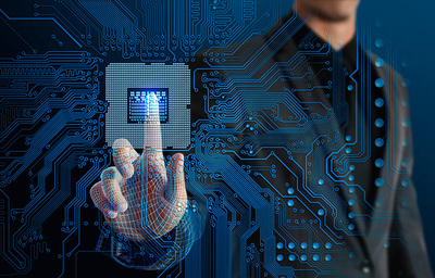 工程师在工厂调整机器与集成电路设计